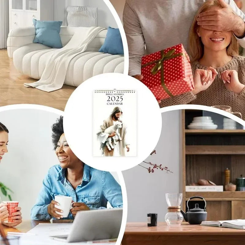5.Wide range of application: Dive into the world of Bible Stories with our 2025 calendar and transport yourself to gentle landscapes of biblical times.