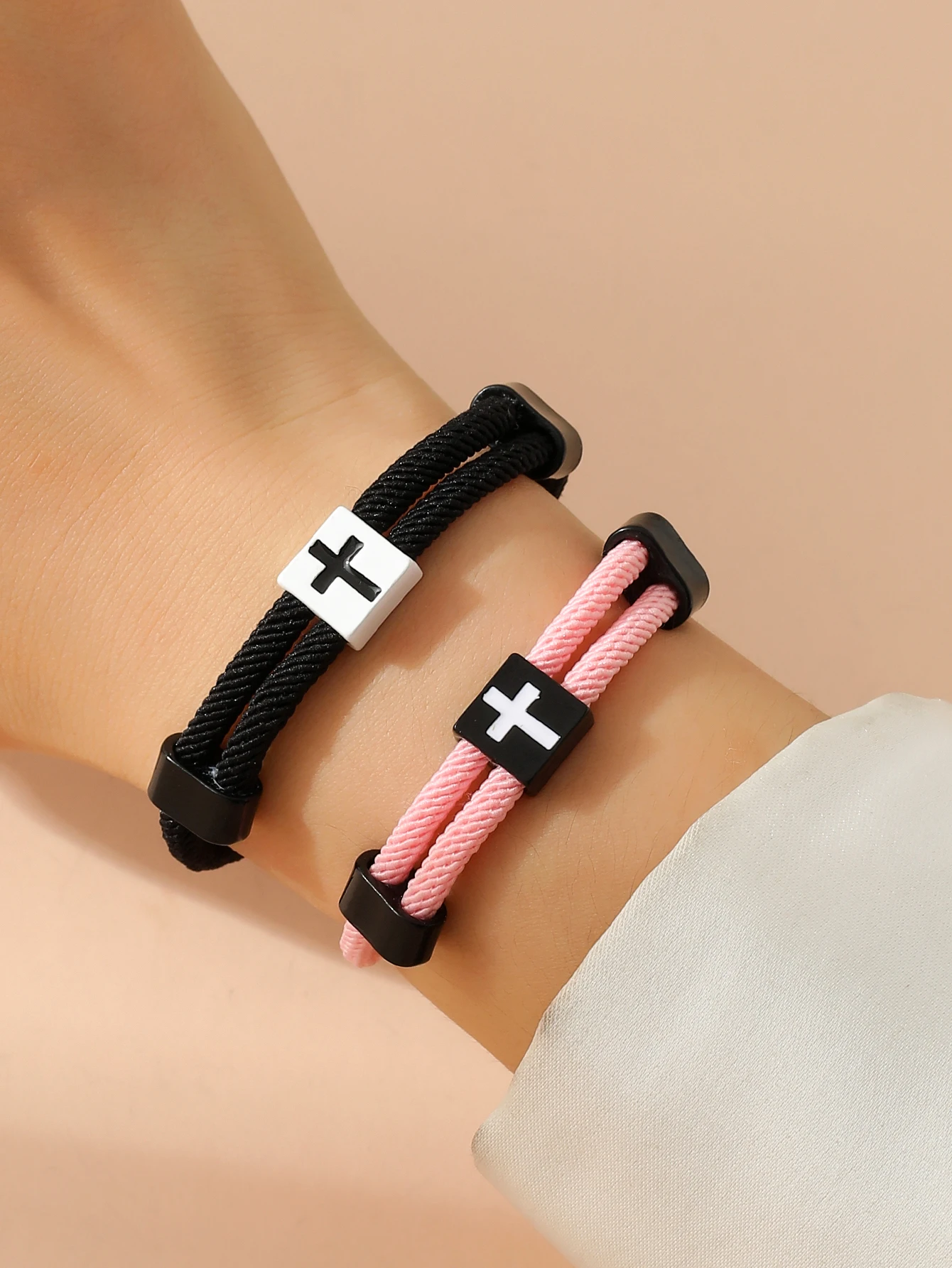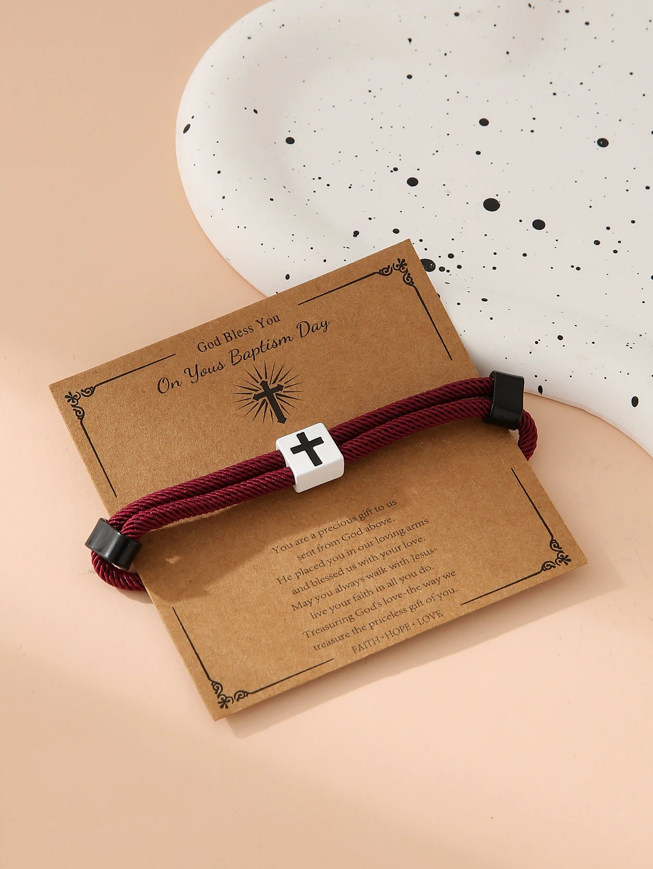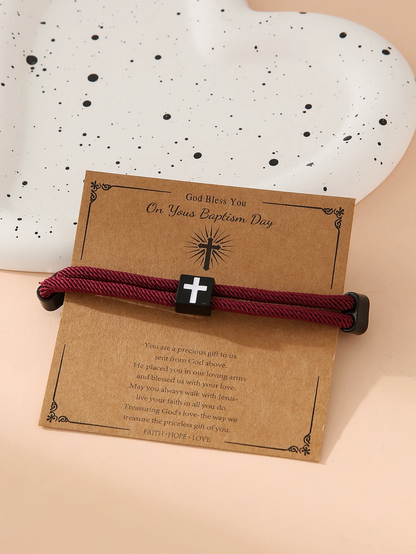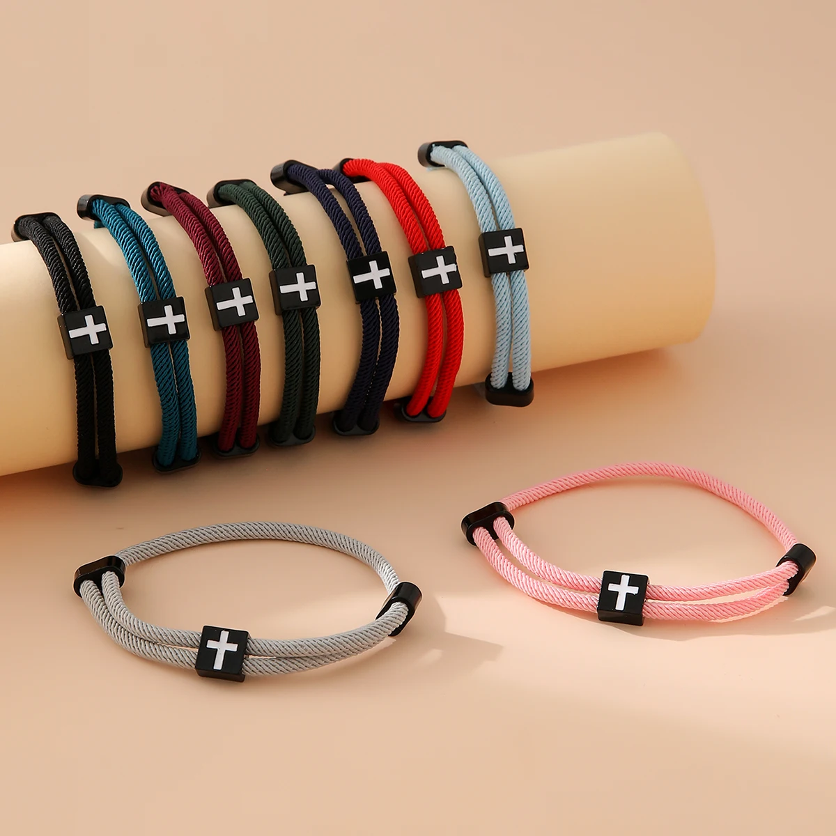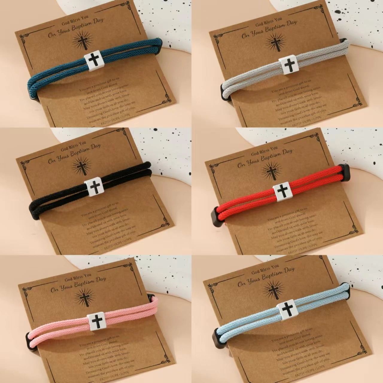 Braided Cross Bracelet for Men Women Christian Adjustable Rope Jesus Bracelets with Metal Knot Christian Baptism Gifts