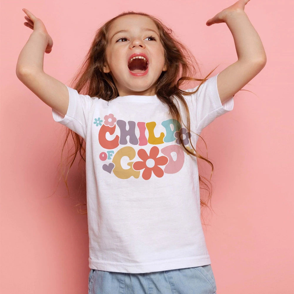 Child of God Printed T-shirt for Girsl Summer Outfit Tops Kids Casual T Shirt Children Short Sleeve Clothes Toddler Tshirts Tee