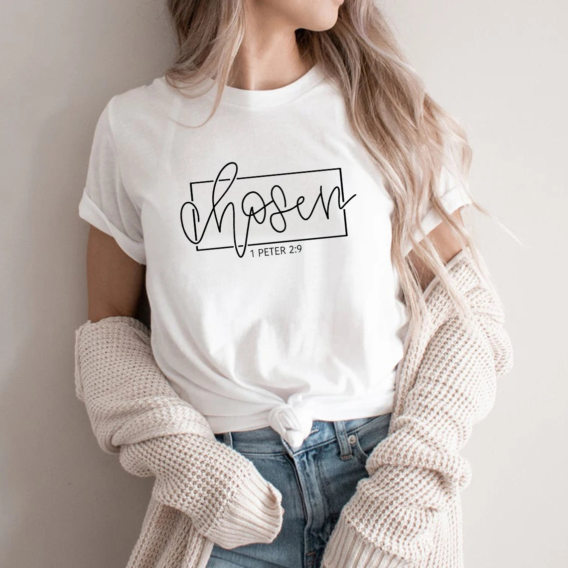 Chosen 1 Peter 2:9 T-Shirt Christian Shirts for Women Religious Clothing Bible Verse T Shirt Women Graphic T Shirts Casual Tops