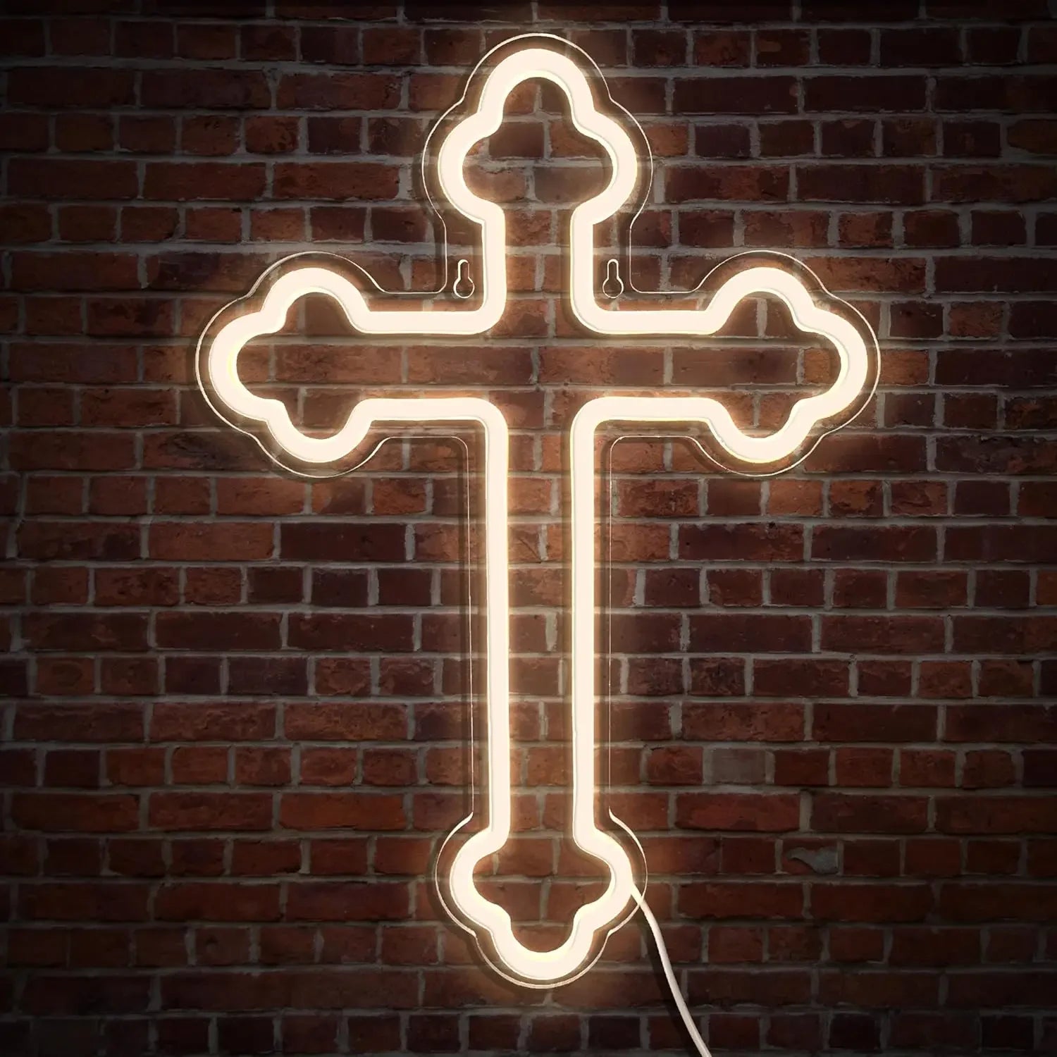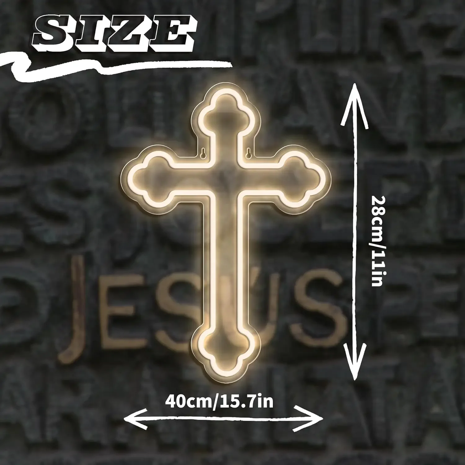 Jesus Cross Neon Sign For Wall Decor LED Neon Lights For Home Bedroom Decor USB Powered LED Lights For Room Decor Kids Gifts