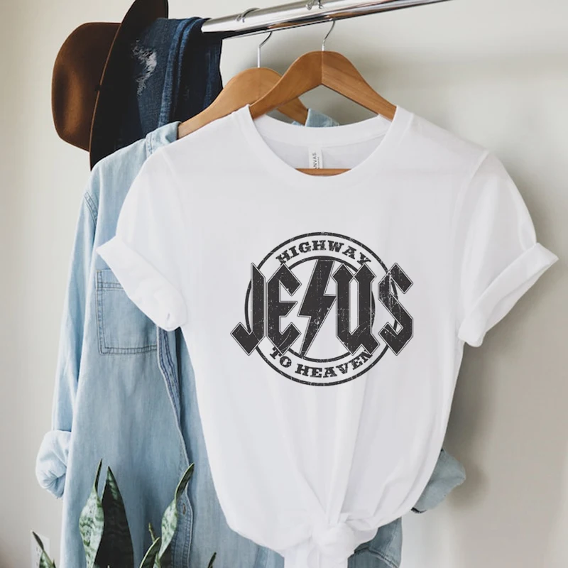 Jesus Highway Faith Christian T-Shirts for Women Cute Funny Religious Tshirts Retro Boho Bible Verse Tee Shirt Vintage Tops Gift